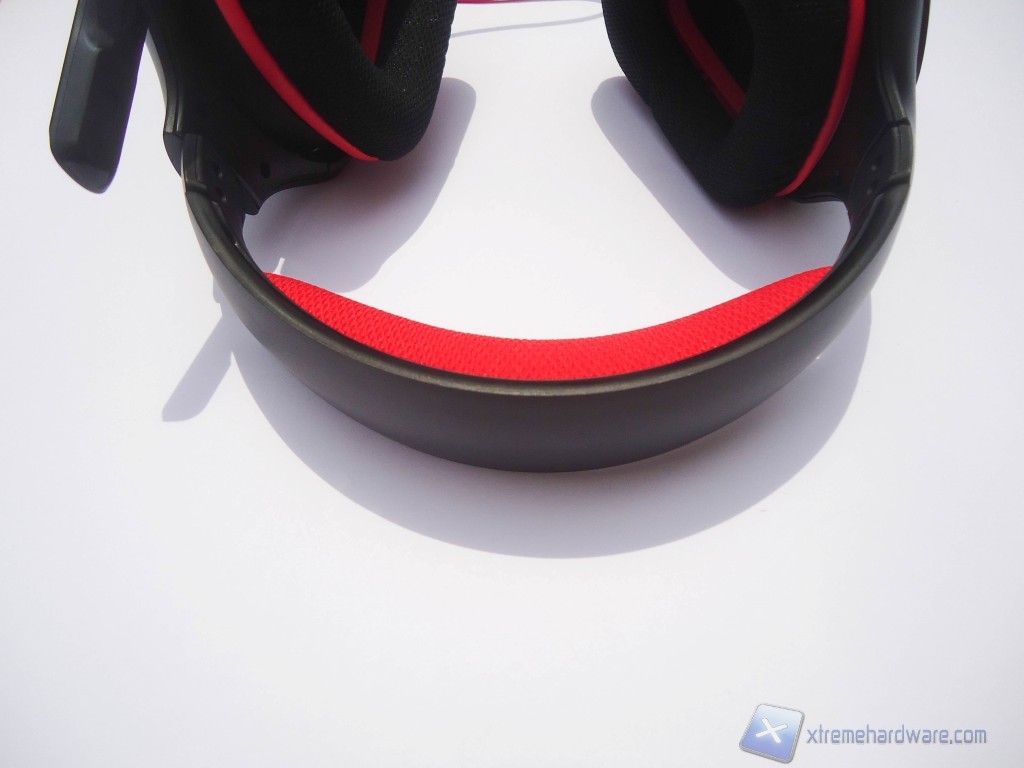 Passiamo all’analisi dell’archetto dell’headset. La struttura presente è la medesima di molti prodotti concorrenti, con un unico archetto che fa sia da struttura portante e sia da sostegno per il capo.